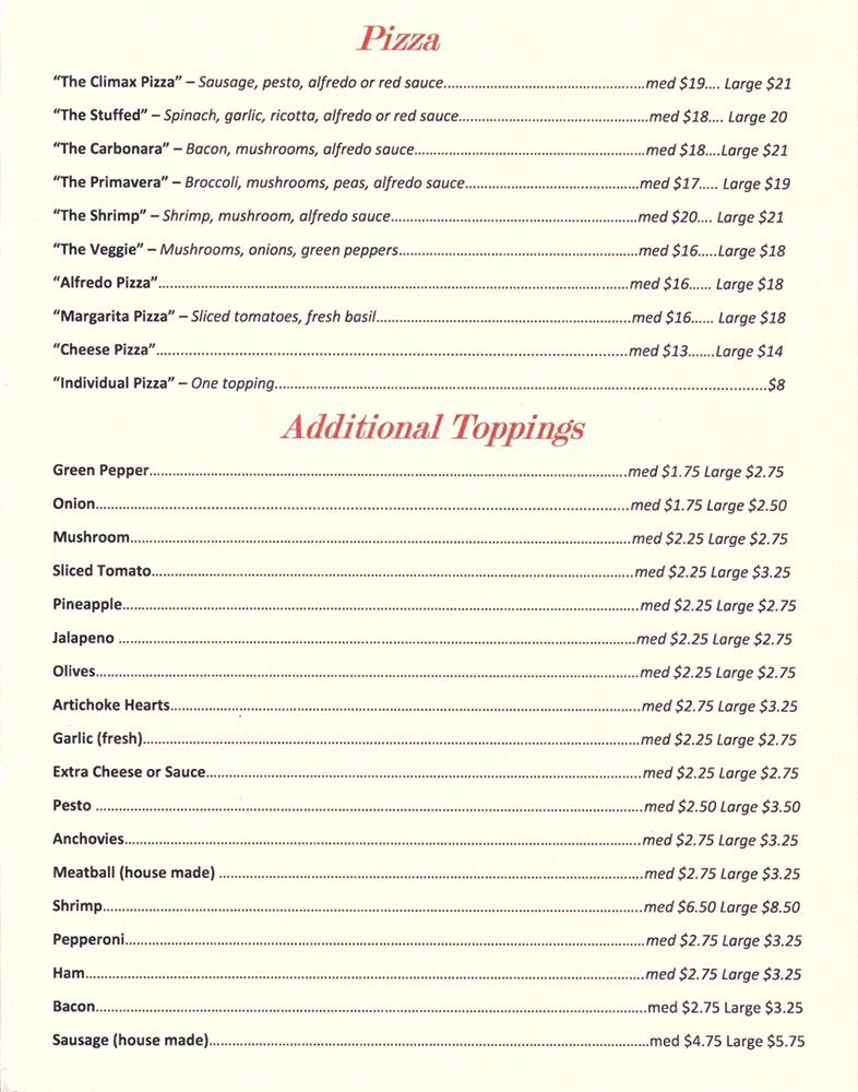Paoli’s Pizzeria & Piano Bar Menu